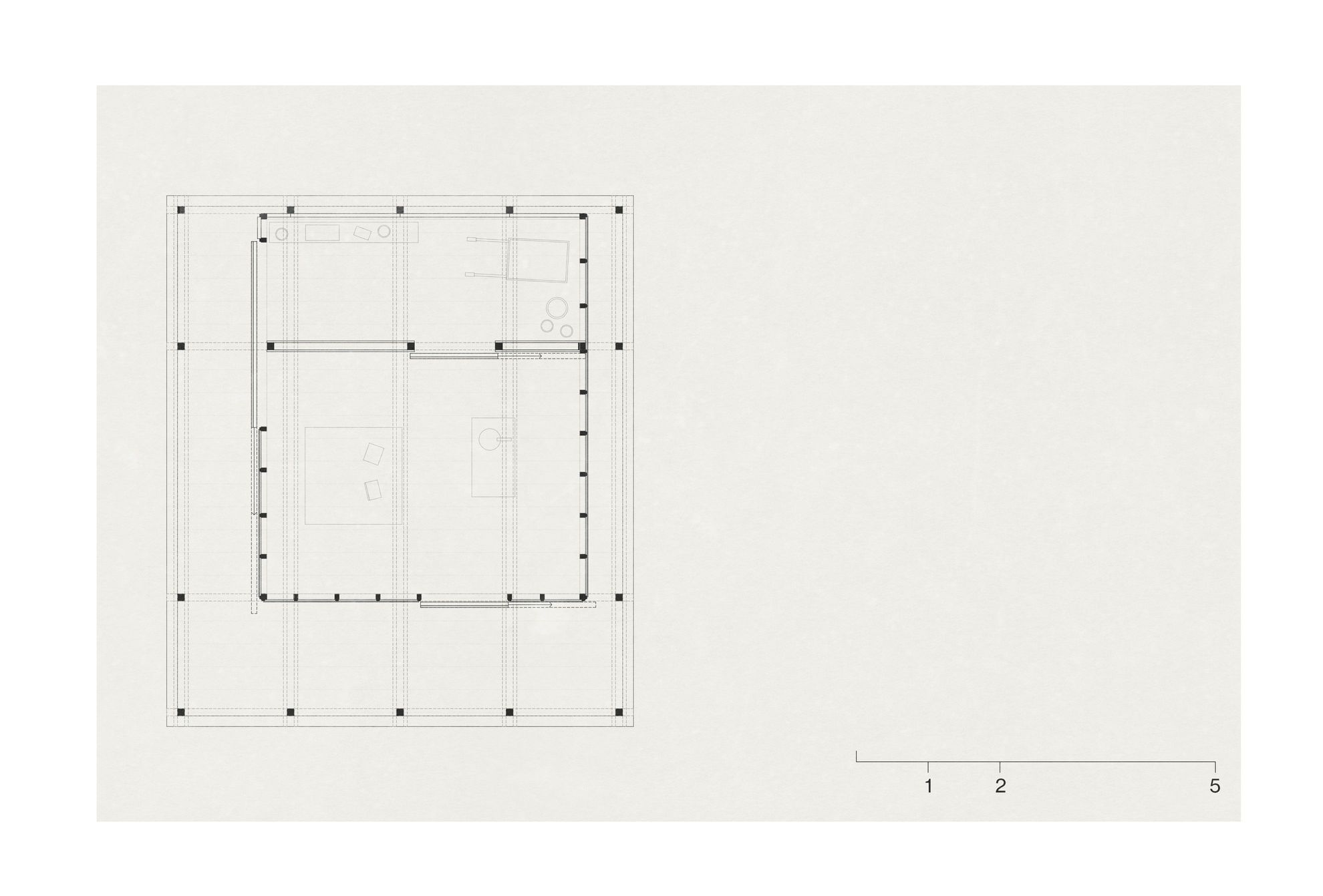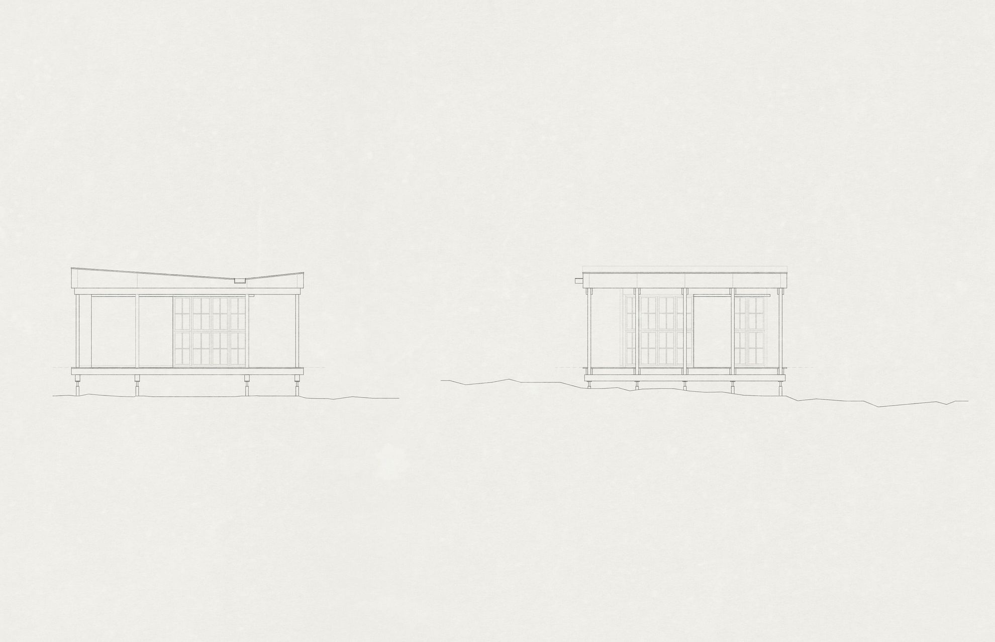 Das Projekt zu einem Gartenhaus ist aus dem Bedürfnis nach geschützter Lagerung und Bearbeitung für einen Slowflowerbetrieb entstanden. Als Ausgangslage war ein Set von 28 Fensterflügeln aus dem Rückbau eines Industriegebäudes vorhanden, die alle an der zurückgesetzten, geschützten Fassade des Pavillons verwendet werden. Ergänzt wird die Hülle der Fensterflügel mit leichten, transluziden Schiebetoren und einer geschlossenen Nordwand. Die vorhandenen Bauteile mit der Berücksichtigung der notwendigen Masstoleranzen treten in ein spannungsvolles Verhältnis zur sichtbaren Struktur, die in sich Züge von Frontalität und Autonomie zeigt, die in der Fernsicht und der Situierung im Gelände zum Tragen kommt. Dazwischen vemittelt der äussere Umgang zwischen den Ansprüchen. Mit der gewählten Farbigkeit werden die Differenzen austariert und die abgenützten Fenster für eine weitere Lebensphase tel quel verwendet.