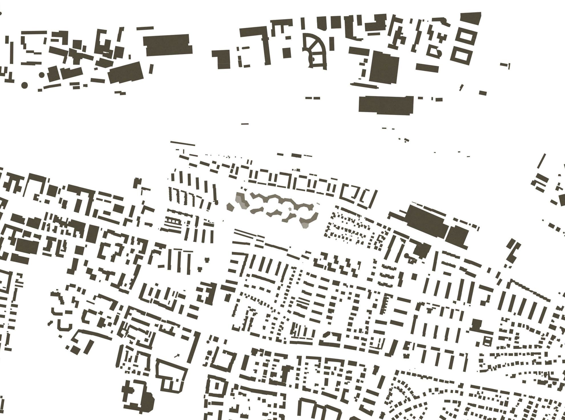 Die starke, in sich ruhende Anlage soll über ein fein verzweigtes Wegenetz vielfältig mit der Umgebung verbunden sein. Eine Hierarchie von Verbindungen verknüpft die Binnenräume mit den angrenzenden Quartieren. Die Erschliessung der Häuser erfolgt über den zentralen gemeinschaftlichen Innenraum. Er bildet die Adressierung sowie den Treffpunkt für die Nachbarschaft bzw. den Spielraum für die Nachbarskinder.