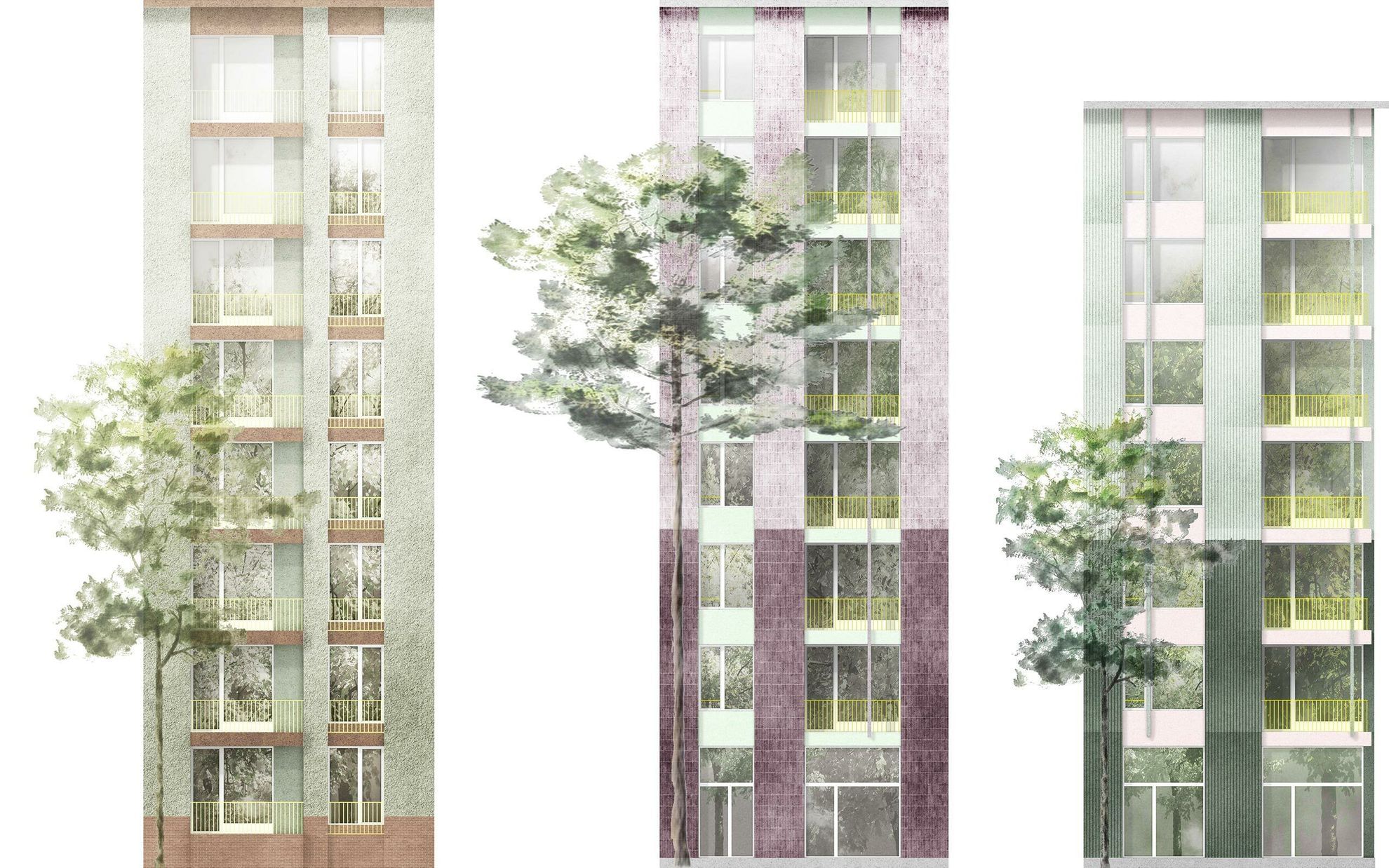 Die fehlende vierte Seite bzw. die Truderingerstrasse bildet heute ein sehr heterogenes Bild. In Teilen ist sie mit strassenbegleitenden Bäumen bereits bestückt. Über einen Anschluss der Baumpflanzung an den bestehenden Grünzug im Westen entsteht ein allseitiger vielfältiger grüner Rahmen. In diesem Rahmen kann die neue Siedlung und das neue Quartier eine eigene Identität entfalten. Als Nebeneffekt bleibt den nördlichen Nachbarn ein angenehmes Gegenüber erhalten als Ersatz des weiten Feldes.